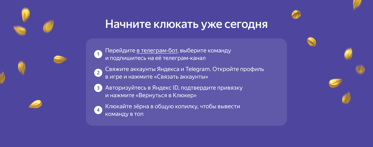 Выбирайте одну из 8 команд и вступайте в командный чат в Telegram. Тапайте по голубю, копите зёрна и получайте билеты на розыгрыши. В этот раз ваши результаты влияют на место команды в турнирной таблице. Участвуйте в раундах и других общих активностях — это повысит ваш шанс на выигрыш призов.